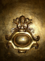 A close view of the stemma located on three sides of the portable altar.